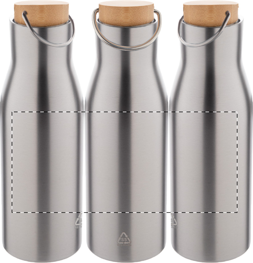 Doppelwandige, vakuumisolierte Flasche aus recyceltem Edelstahl mit Tragedeckel aus Bambus. Füllmenge: 500 ml.Maße: ø70×224 mmFüllmenge: 500 mlSpülmaschinengeeignet: NeinMikrowellenfest: NeinWandtyp: DoppelwandigIsolationstyp: Vakuum-IsolationKalthaltezeit: 12 óraWarmhaltezeit: 12 óraauslaufsicher / schwappsicher: auslaufsicherMaterial: Recycelter Edelstahl, BambusVeredelungsposition 1: VorderseiteTechnologie: GravurDurchmesser: 0Druckcode: E3Technologie: Gravur - EinzelnamenDurchmesser: 0Druckcode: NE3Technologie: TampondruckMaximale Farben: 2Durchmesser: 0Druckcode: P3Veredelungsposition 2: RundumTechnologie: Rundum-GravurDurchmesser: 0Druckcode: ER1Technologie: Rundum-GravurDurchmesser: 0Druckcode: ER2Technologie: Rundumgravur - EinzelnamenDurchmesser: 0Druckcode: NER1Technologie: Rundumgravur - EinzelnamenDurchmesser: 0Druckcode: NER2Technologie: Rundum-UV-LED-Druck - EinzelnamenDurchmesser: 0Druckcode: NRUVTechnologie: Rundum-SiebdruckMaximale Farben: 1Durchmesser: 0Druckcode: RS2Technologie: Rundum-UV LED-DruckDurchmesser: 0Druckcode: RUVVeredelungsposition 3: KappeTechnologie: GravurDurchmesser: 35Druckcode: E3Technologie: Gravur - EinzelnamenDurchmesser: 35Druckcode: NE3Technologie: TampondruckMaximale Farben: 2Durchmesser: 30Druckcode: P3Veredelungsposition 4: BambusteilTechnologie: DomingDurchmesser: 45Druckcode: DO4
