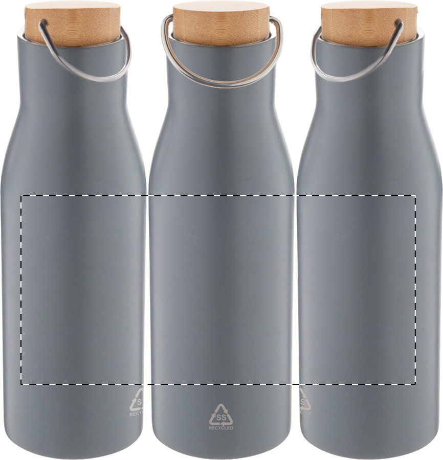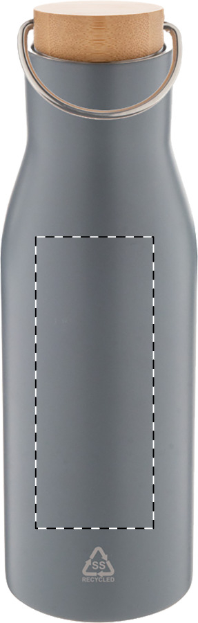 Doppelwandige, vakuumisolierte Flasche aus recyceltem Edelstahl mit Tragedeckel aus Bambus. Füllmenge: 500 ml.Maße: ø70×224 mmFüllmenge: 500 mlSpülmaschinengeeignet: NeinMikrowellenfest: NeinWandtyp: DoppelwandigIsolationstyp: Vakuum-IsolationKalthaltezeit: 12 óraWarmhaltezeit: 12 óraauslaufsicher / schwappsicher: auslaufsicherMaterial: Recycelter Edelstahl, BambusVeredelungsposition 1: VorderseiteTechnologie: GravurDurchmesser: 0Druckcode: E3Technologie: Gravur - EinzelnamenDurchmesser: 0Druckcode: NE3Technologie: TampondruckMaximale Farben: 2Durchmesser: 0Druckcode: P3Veredelungsposition 2: RundumTechnologie: Rundum-GravurDurchmesser: 0Druckcode: ER1Technologie: Rundum-GravurDurchmesser: 0Druckcode: ER2Technologie: Rundumgravur - EinzelnamenDurchmesser: 0Druckcode: NER1Technologie: Rundumgravur - EinzelnamenDurchmesser: 0Druckcode: NER2Technologie: Rundum-UV-LED-Druck - EinzelnamenDurchmesser: 0Druckcode: NRUVTechnologie: Rundum-SiebdruckMaximale Farben: 1Durchmesser: 0Druckcode: RS2Technologie: Rundum-UV LED-DruckDurchmesser: 0Druckcode: RUVVeredelungsposition 3: KappeTechnologie: GravurDurchmesser: 35Druckcode: E3Technologie: Gravur - EinzelnamenDurchmesser: 35Druckcode: NE3Technologie: TampondruckMaximale Farben: 2Durchmesser: 30Druckcode: P3Veredelungsposition 4: BambusteilTechnologie: DomingDurchmesser: 45Druckcode: DO4