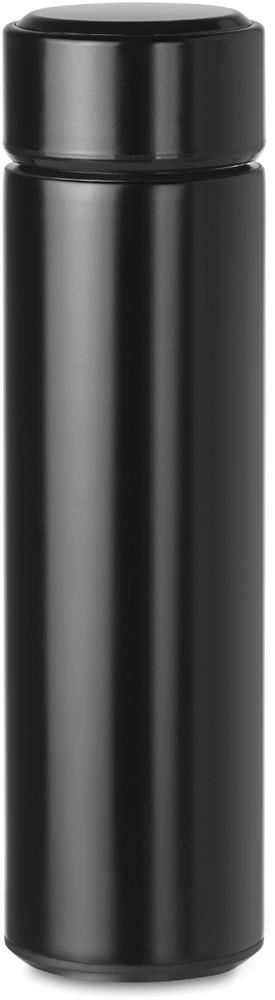 Doppelwandige Isolierkanne aus Edelstahl. Mit Tee-Sieb. Im Deckel befindet sich eine integrierte Touchscreen LED Temperaturanzeige, die die Temperatur des Getränks anzeigt. Inkl. 1 austauschbare CR2032. Batterie. Füllmenge: 450 ml. Auslaufsicher.