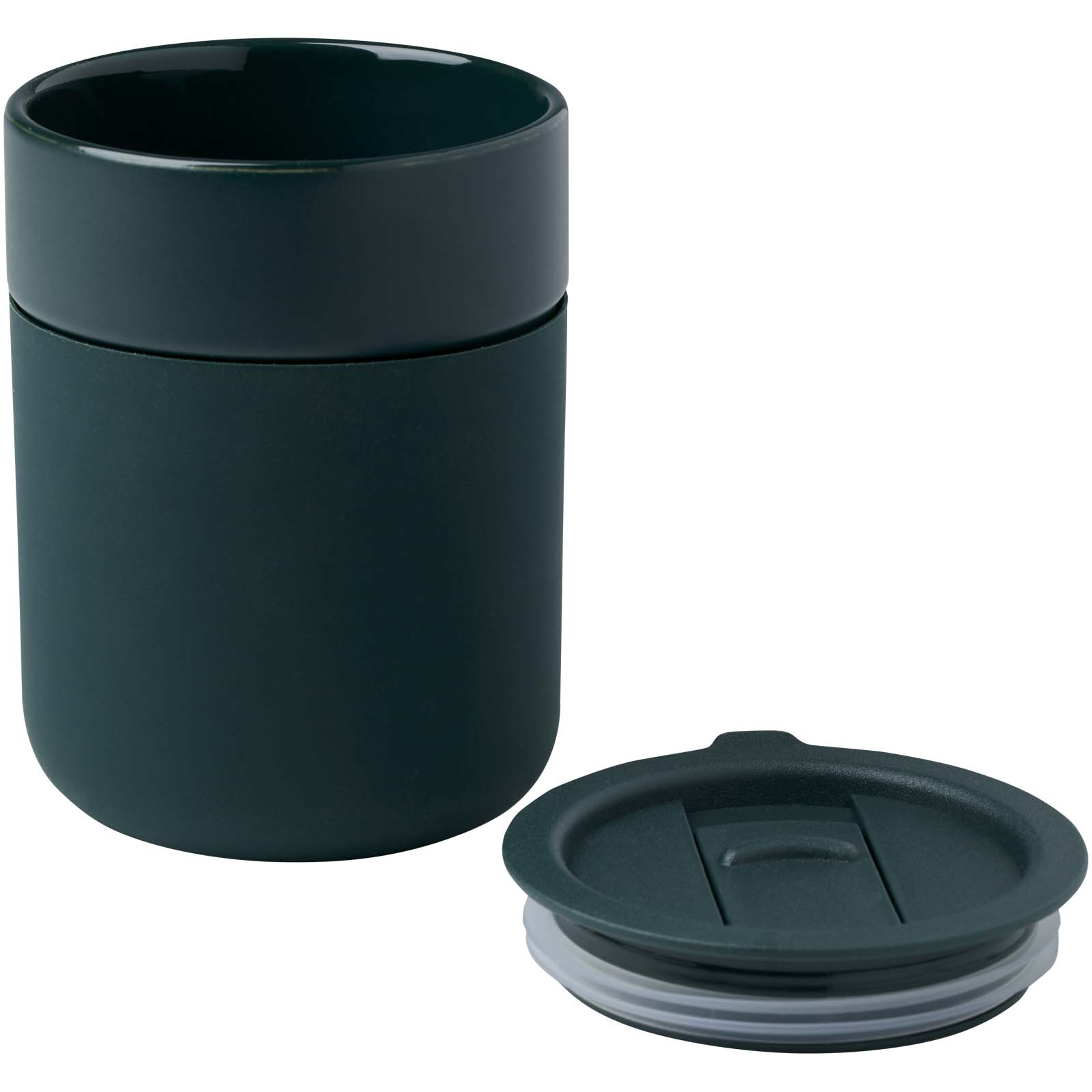 Java 330 ml Keramikbecher mit Silikonhülle und Kunststoffdeckel Grün