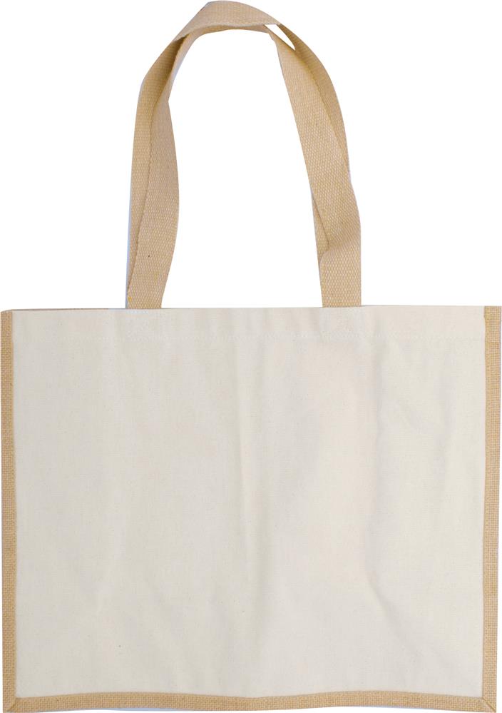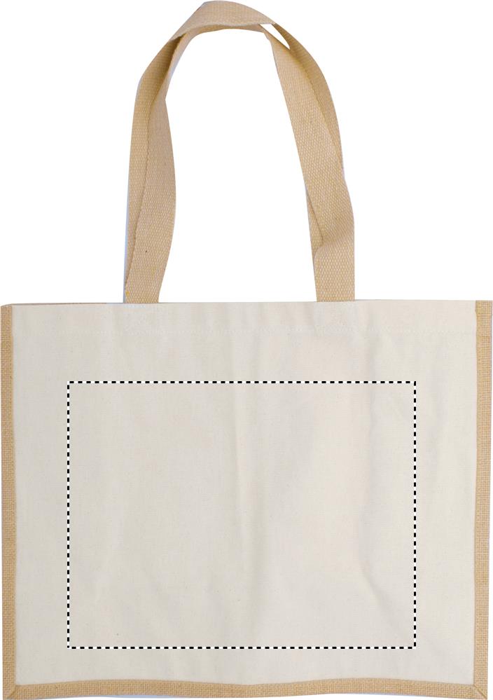 Jute/Canvas Shopping Tasche. Seiten und Boden aus laminierter Jute, Front aus Canvas. Lange Griffe.Material: JuteMaße: 42x19x33 cmGewicht: 0.219 kgVeredelung: Bestickung, Bedruckung, BeflockungHandling/Farbcodes: /13, 03, 04, 05, 48Druckposition: FRONTDruckmaße: 300 x 230 mmDrucktechniken: TR, S2, T1, TD1Druckposition: BACKDruckmaße: 300 x 230 mmDrucktechniken: S2, T1, TD1, TR