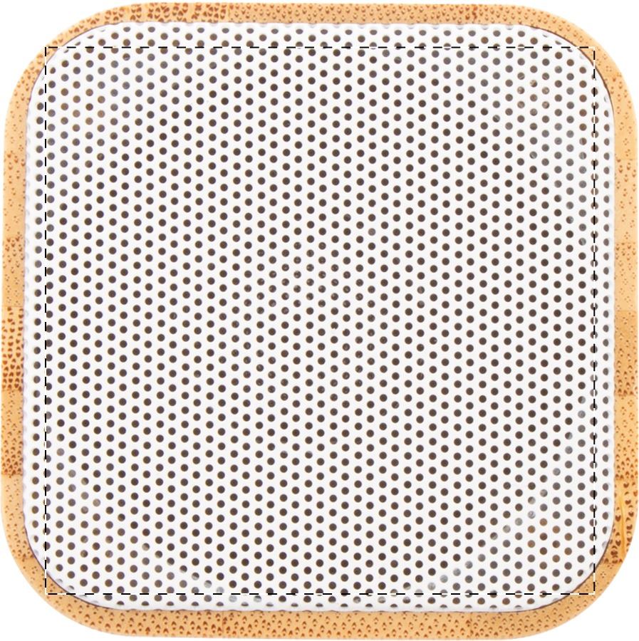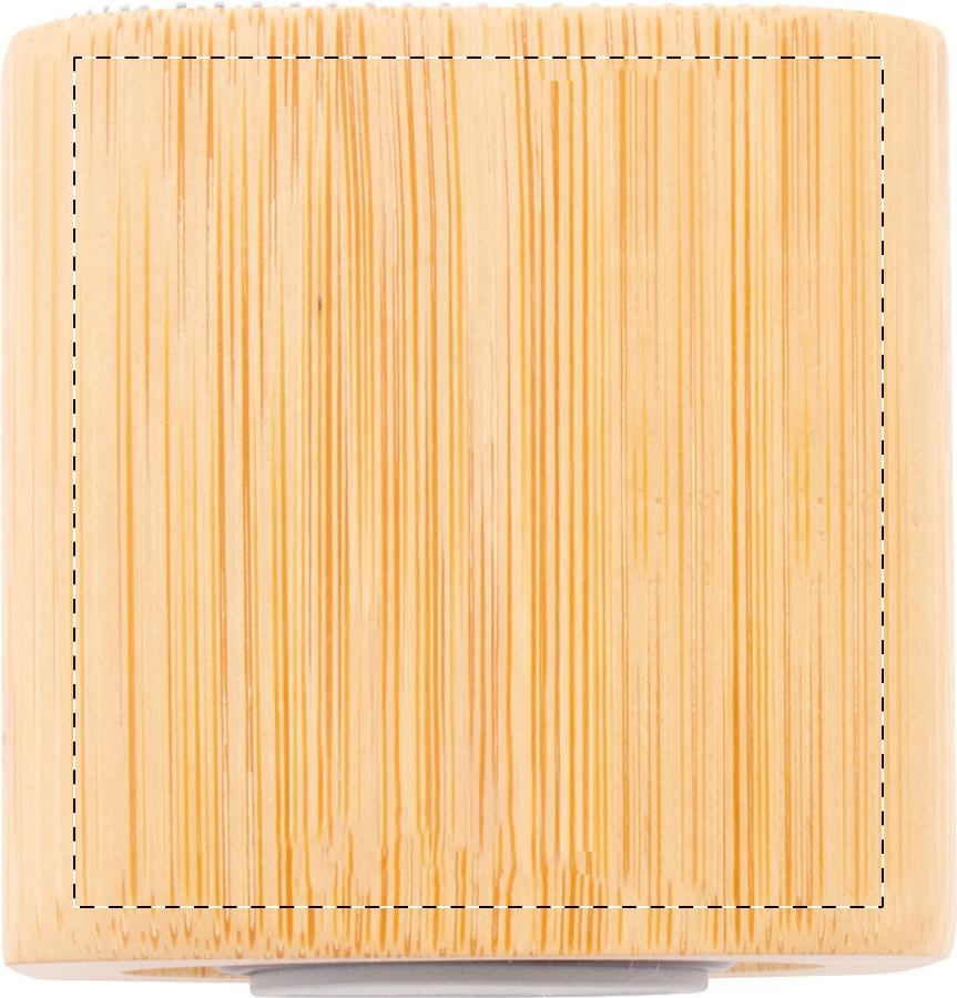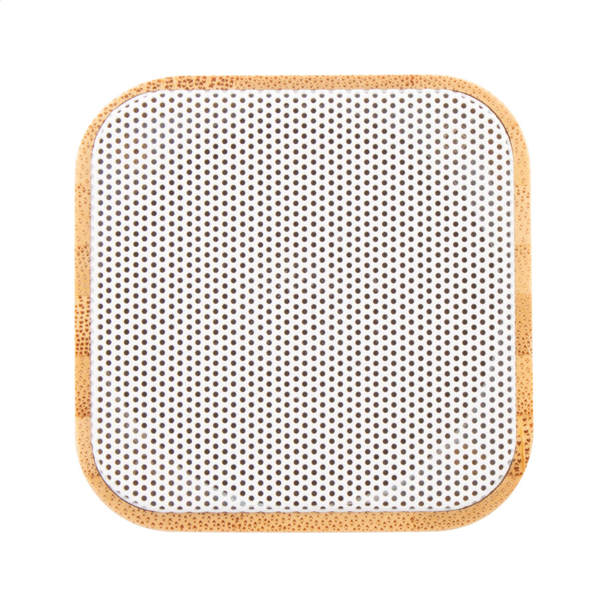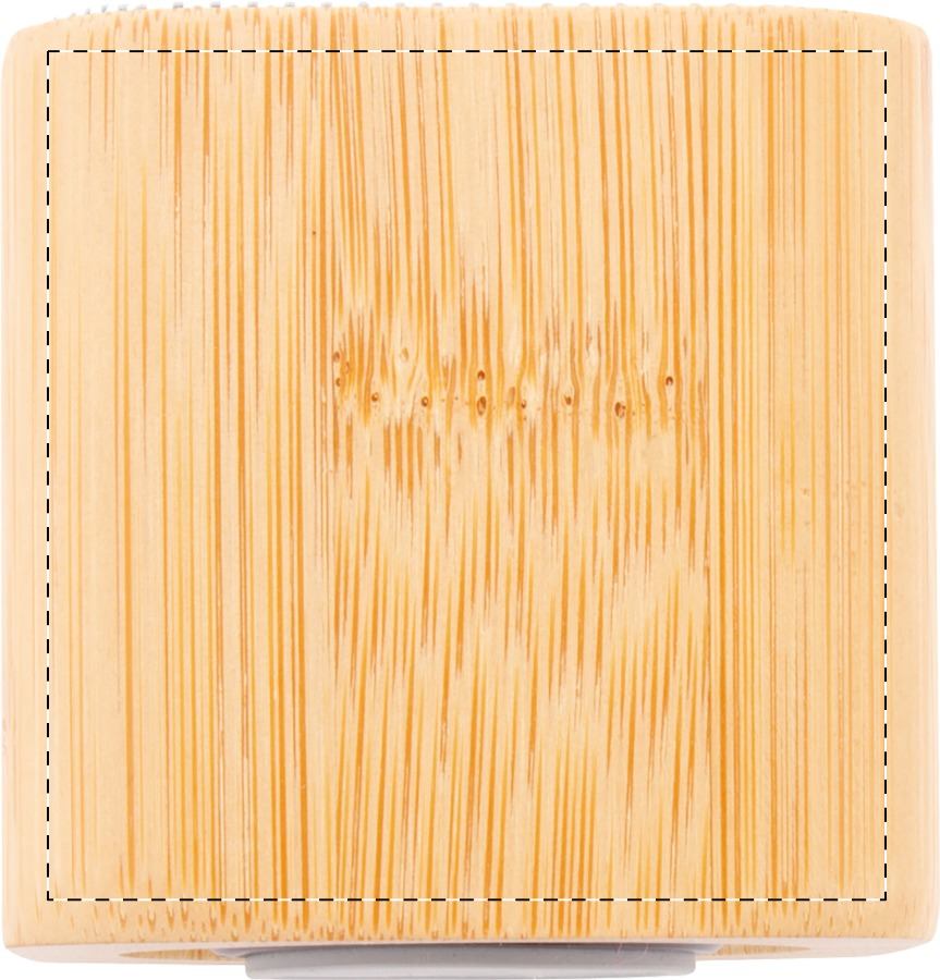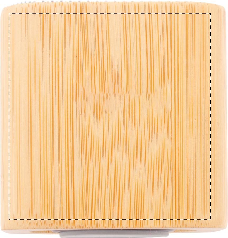 Kabelloser Lautsprecher im Bambusgehäuse mit Freisprechfunktion und eingebautem Akku. Inklusive USB-Ladekabel.