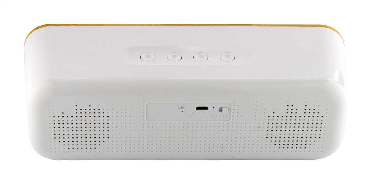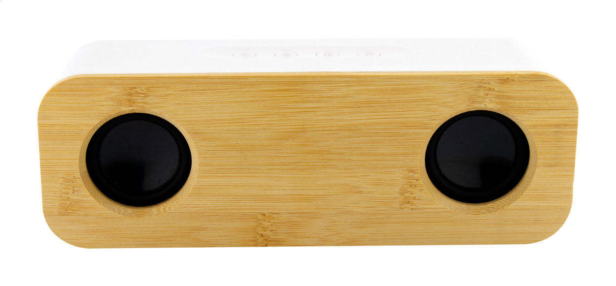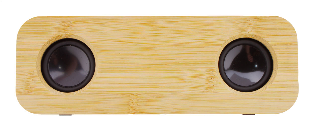 Kabelloser Lautsprecher im Gehäuse aus recyceltem ABS und Bambus mit 2 Lautsprechertreibern und eingebautem, wiederaufladbarem Akku. Mit Freisprechfunktion und FM-Radiofunktion. Inklusive USB-Ladekabel.