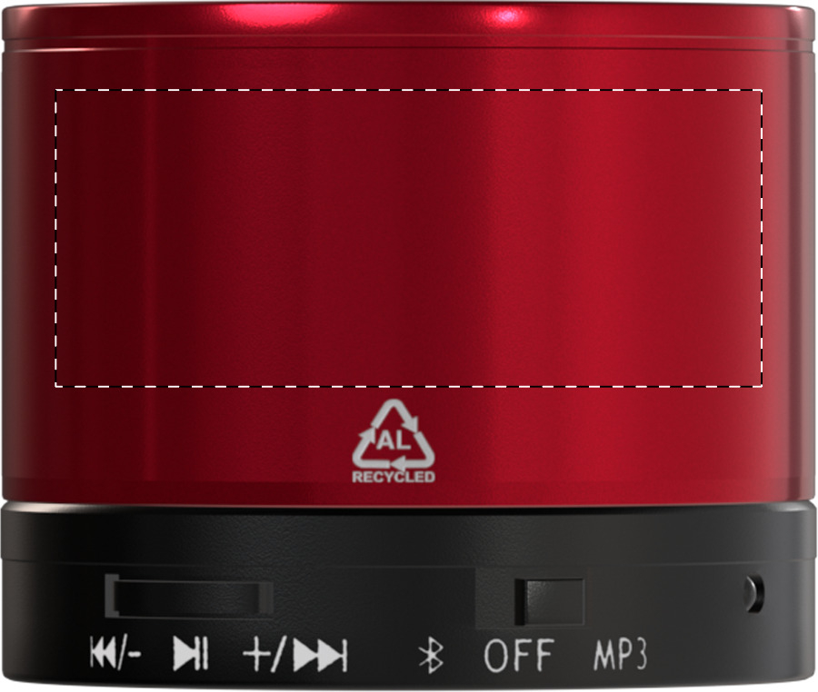 Kabelloser Lautsprecher in einem Gehäuse aus recyceltem Aluminium und recyceltem ABS. Mit Radio, MP3-Player, Freisprechfunktion und eingebautem, wiederaufladbarem Akku (300 mAh). Inklusive USB-Ladegerät und Aux-In-Kabel.