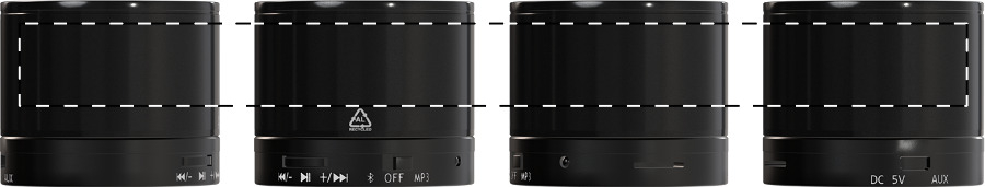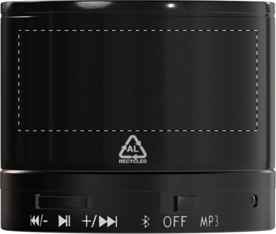Kabelloser Lautsprecher in einem Gehäuse aus recyceltem Aluminium und recyceltem ABS. Mit Radio, MP3-Player, Freisprechfunktion und eingebautem, wiederaufladbarem Akku (300 mAh). Inklusive USB-Ladegerät und Aux-In-Kabel.Maße: ø59×50 mmDrahtlose Verbindung: JaLautsprecherausgang: 3 WFreisprechfunktion: JaMicro SD MP3 playback: JaFM Radiofunktion: JaEingebauter Akku: JaKapazität: 300 mAhInklusive USB Ladekabel: JaLadbar über USB: JaMaterial: Recycletes Aluminium, Recycelter ABS-KunststoffVeredelungsposition 1: VorderseiteTechnologie: GravurDurchmesser: 0Druckcode: E3Technologie: Gravur - EinzelnamenDurchmesser: 0Druckcode: NE3Technologie: TampondruckMaximale Farben: 4Durchmesser: 0Druckcode: P3Veredelungsposition 2: RückseiteTechnologie: GravurDurchmesser: 0Druckcode: E3Technologie: Gravur - EinzelnamenDurchmesser: 0Druckcode: NE3Technologie: TampondruckMaximale Farben: 4Durchmesser: 0Druckcode: P3Veredelungsposition 3: RundumTechnologie: Rundum-GravurDurchmesser: 0Druckcode: ER1Technologie: Rundum-GravurDurchmesser: 0Druckcode: ER2Technologie: Rundumgravur - EinzelnamenDurchmesser: 0Druckcode: NER1Technologie: Rundumgravur - EinzelnamenDurchmesser: 0Druckcode: NER2Veredelungsposition 4: ObenTechnologie: UV-LED-Druck - EinzelnamenDurchmesser: 45Druckcode: NUVDTechnologie: UV LED DruckDurchmesser: 45Druckcode: UVD