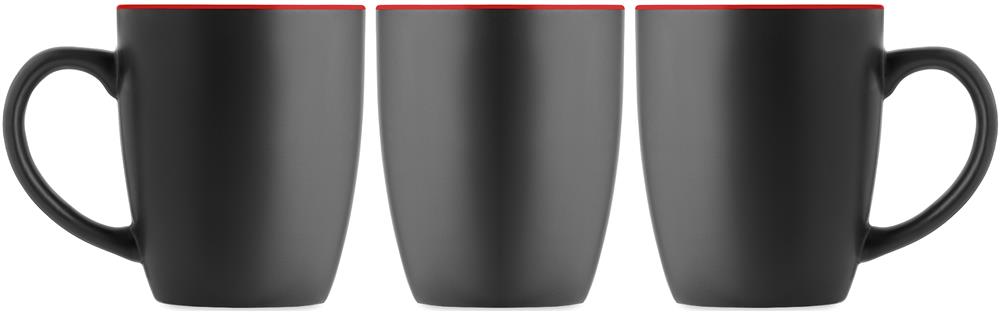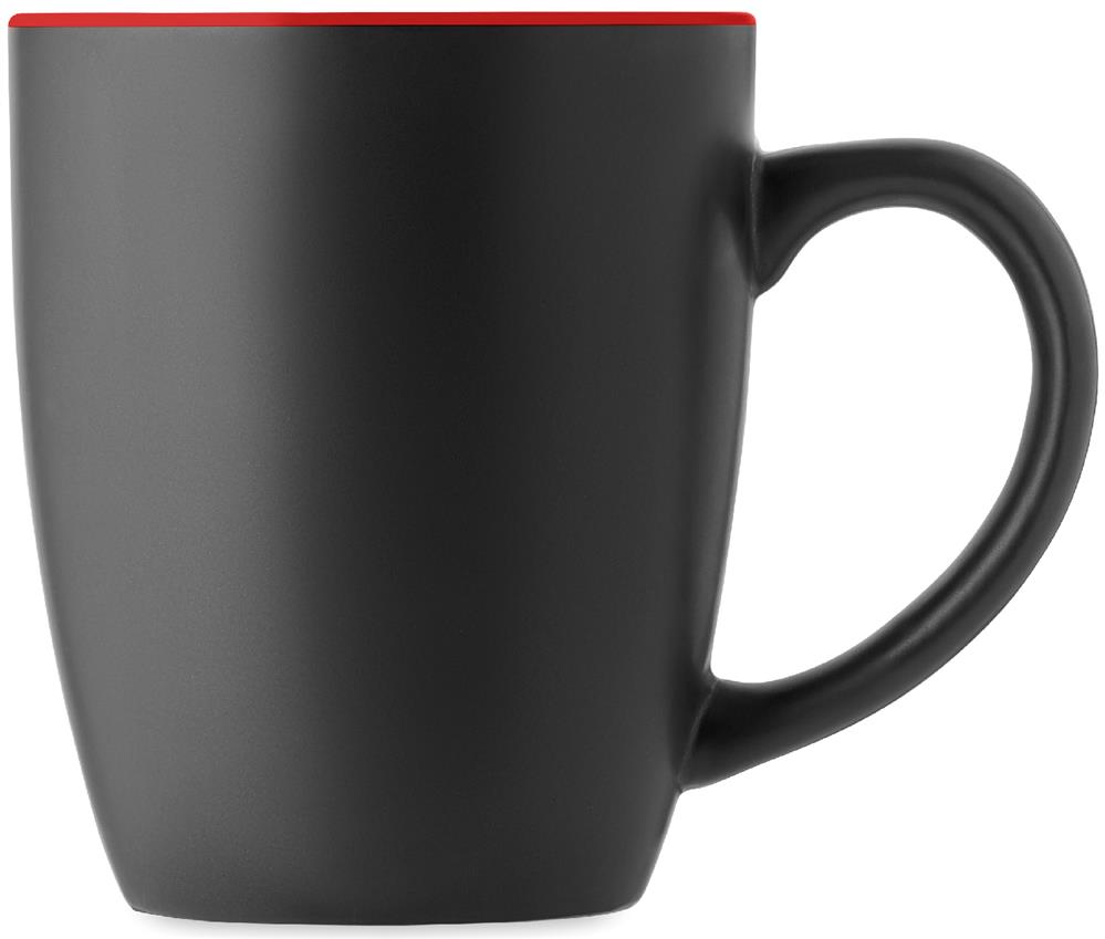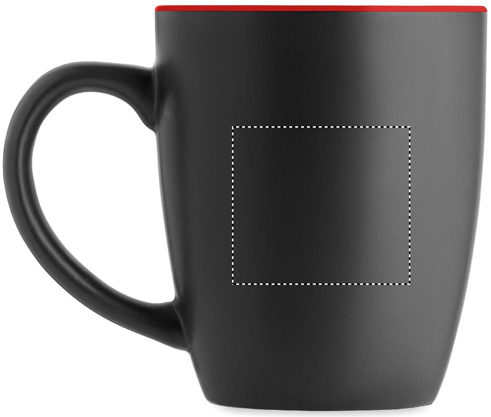 Schwarzer Kaffeebecher aus matter Keramik. Glänzende, farbige Innenseite. Füllmenge: 290 ml. Mit einer speziellen Beschichtung für LasergravurMaterial: Keramik SteingutMaße: Ø8,5x10,1 cmGewicht: 0.331 kgVeredelung: Bestickung, Bedruckung, BeflockungHandling/Farbcodes: B/03, 05, 06, 37, 48, 85Druckposition: ROUNDSCREENDruckmaße: 130 x 30 mmDrucktechniken: RS6Druckposition: RIGHT HANDEDDruckmaße: 45 x 40 mmDrucktechniken: P6, L3Druckposition: LEFT HANDEDDruckmaße: 45 x 40 mmDrucktechniken: L3, P6Druckposition: MUG TCDruckmaße: 200 x 35 mmDrucktechniken: TCDruckposition: INSIDE TCDruckmaße: 150 x 20 mmDrucktechniken: TC