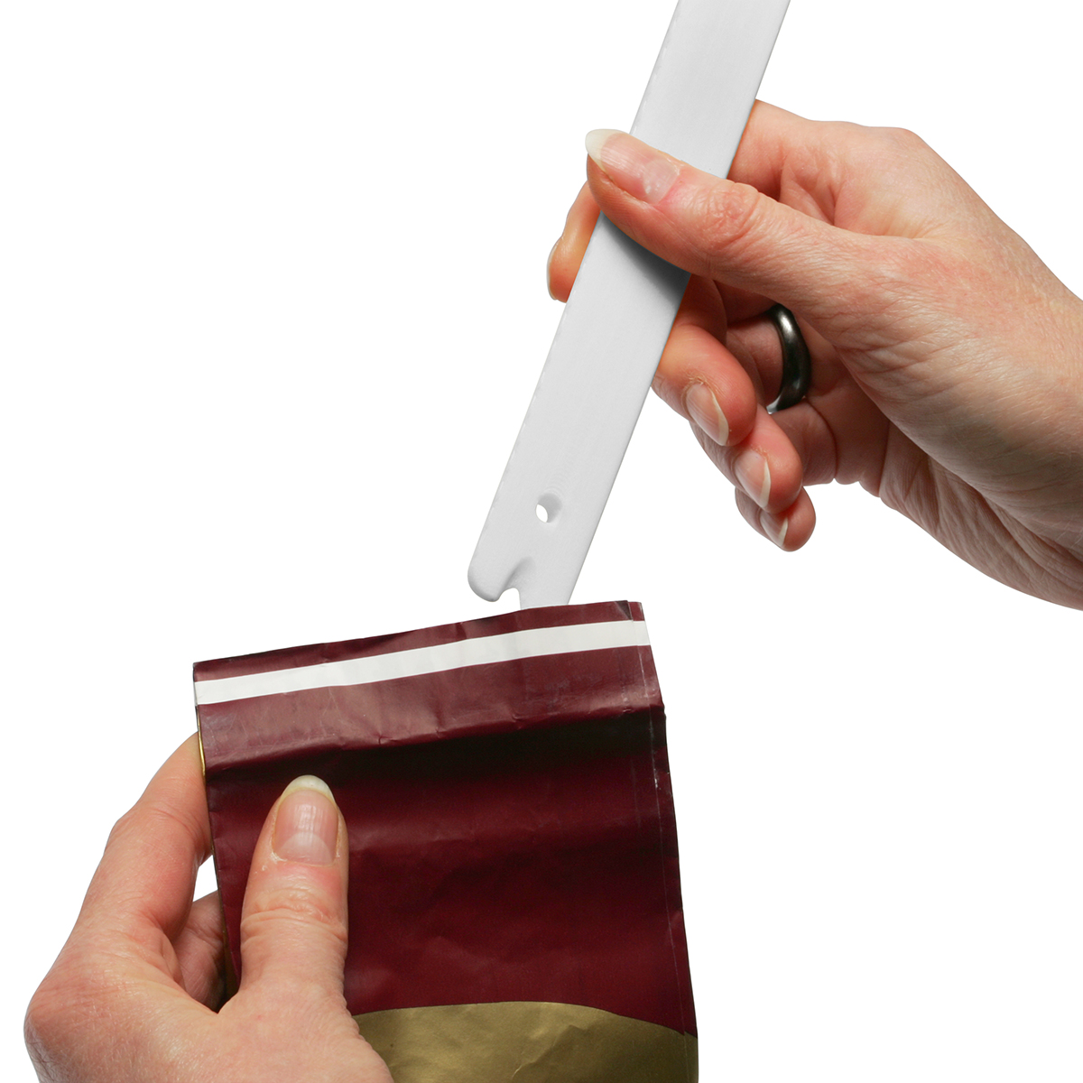 Zum praktischen Verschließen von offenen Verpackungen und Tüten, zum Einfrieren geeignet. Länge 85 mmSuchbegriffe: TütenverschlussMaße: 85 x 11 x 8 mmGewicht: 5 gMaterial: PPVeredelung: TampondruckDruckcodes: T/B (1)Veredelung 1------------Platzierung: Vorderseite (1)Druckfläche: 40 x 8 mmDruckart: TampondruckDruckgruppe, Druckcode: B, T/BDruckfarben max.: 1