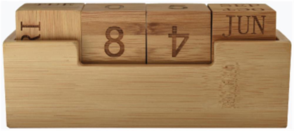 Ewiger Kalender aus Bambus. Bambus ist ein natürliches Produkt, es kann daher zu leichten Abweichungen in Farbe, Dekor und Maßen kommen.