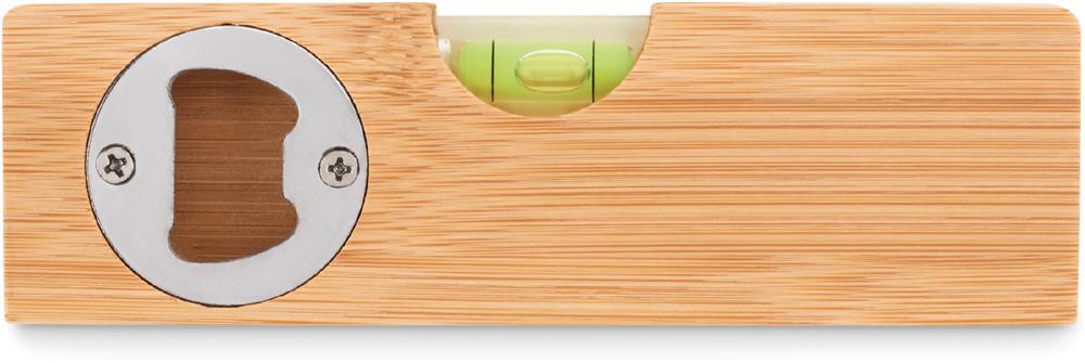 Kleine Wasserwaage aus Bambus mit integriertem Kapselheber. Bambus ist ein natürliches Produkt, es kann daher zu leichten Abweichungen in Farbe, Dekor und Maßen kommen.