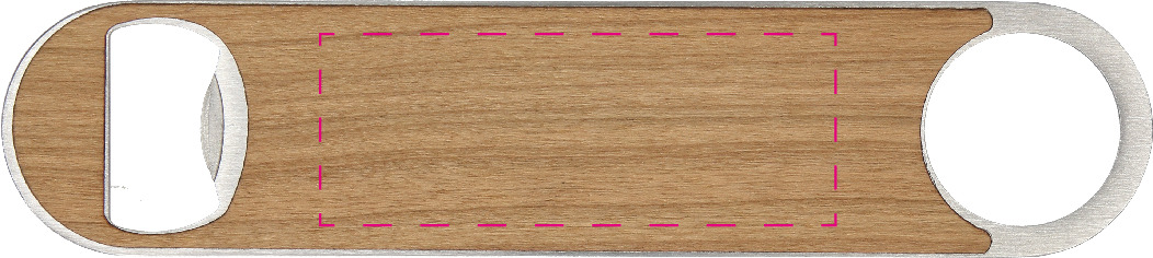 Flacher Flaschenöffner aus Edelstahl und Holz. Eignet sich aufgrund des Loches perfekt für kleine Spinner-Shows hinter der Bar. Außerdem gut an magnetischen Oberflächen zu befestigen.
