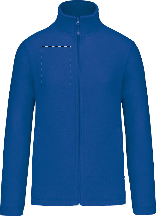 Jacke aus Mikro-Polarfleece mit Reißverschluss und Seitentaschen mit Reißverschluss. Material: 100 % Polyester, 180 g/m². Marke: Kariban.