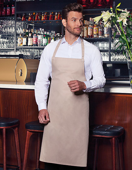Köpergewebe, 215 g/m²Hochveredelt, gekrumpft, waschecht, pflegeleichtLatzschürze mit Bändern aus Schürzenstoff, mit NahtsicherungLatzband mit Druckknopf zum Einstellen der Länge in 3 verschiedenen StufenIndustriewäschetauglichWaschbar bis 95°CMaterial: 65% Polyester, 35% BaumwolleGrammatur: 215 g/m²Gewicht: 0.229Hergestellt nach: Oeko-Tex 100, EN 15797Veredelung: Bestickung, Bedruckung, BeflockungGröße: 75 x 95 cm