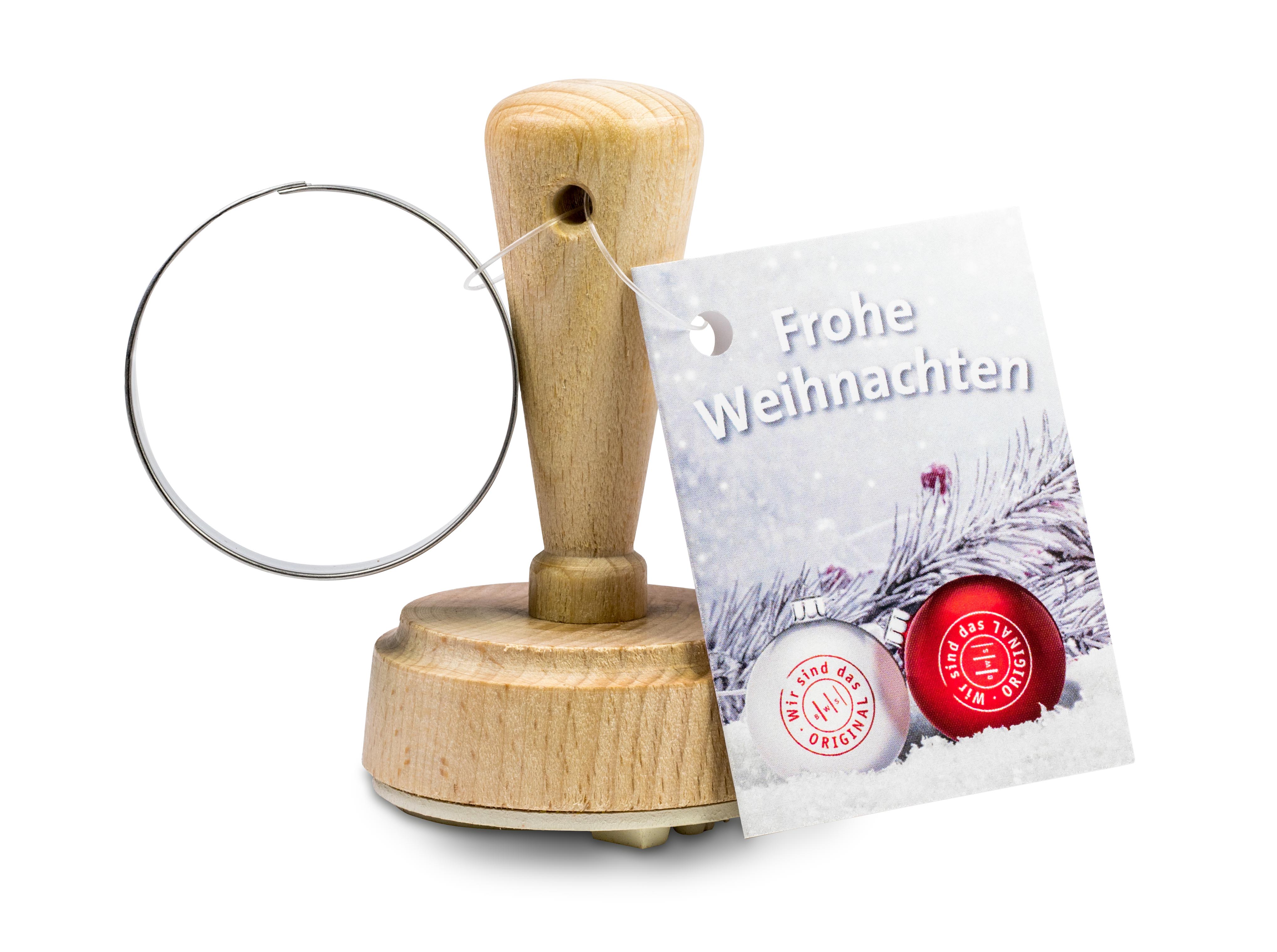 Individueller, gleichbleibender, lebensmittelechter Gummistempel. Holzgriff, deutsche Buche unbehandelt. Standardmaß 35 mm und 55 mm, alle weiteren Größen und Formen auf Anfrage. Ab 100 Stück außen bedruckbare Werbekarte, innen auf Wunsch ein Backrezept. Kombinierbar mit passendem, rundem Backförmchen aus Edelstahl (spülmaschinenfest).Größe: Hoehe 85 mm, Ø ca. 35 mmWerbefläche: Ø 31 mmSuchbegriffe: Stempel, Plaetzchen, Backen, Kekse, WeihnachtenGewicht: 30 gMaterial: Holz, Gummi