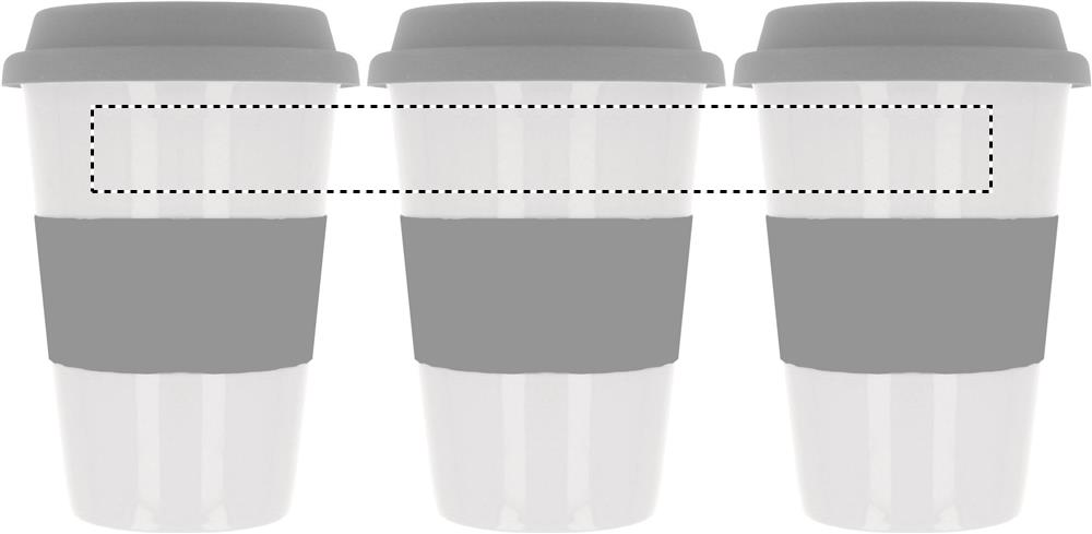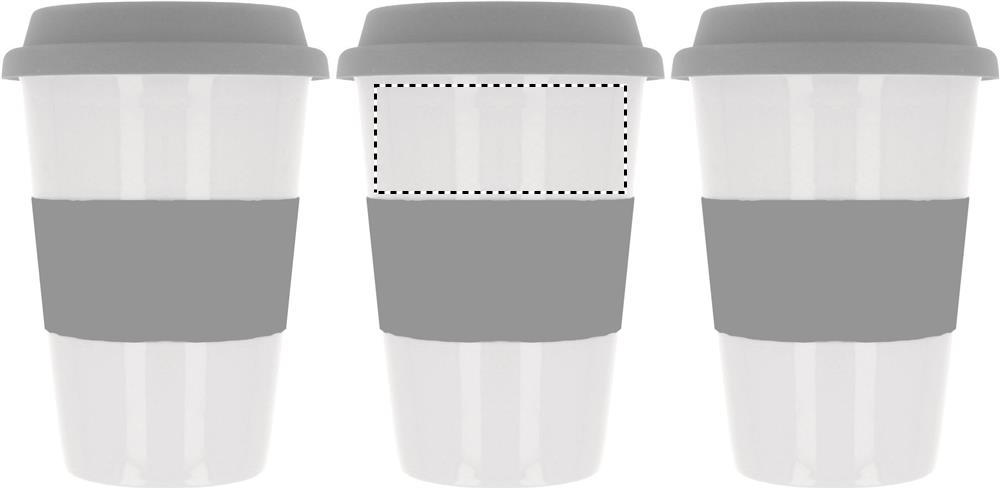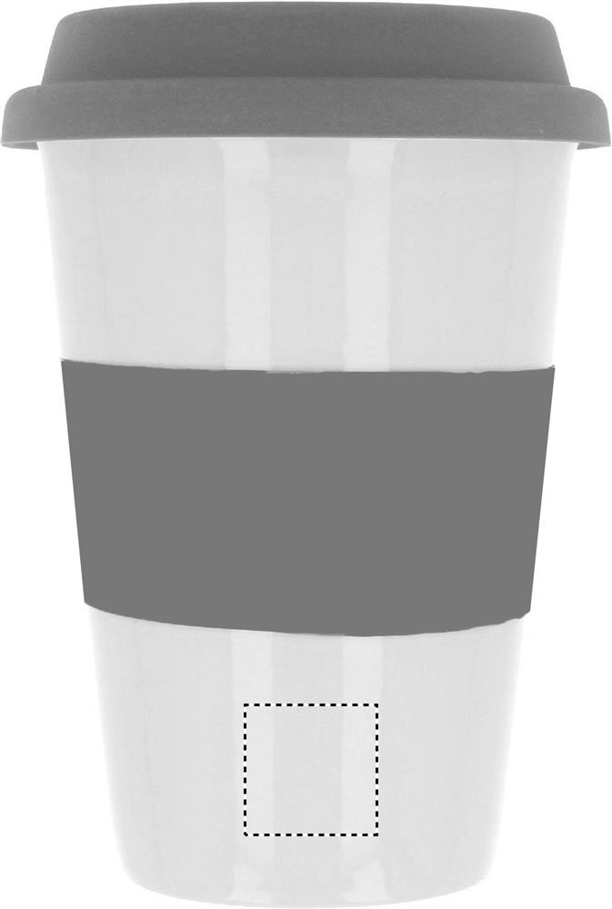 Einwandiger Keramikbecher mit Silikon-Deckel und einem Silikon-Griff . Füllmenge 400ml. Nur Keramik-Transferdruck ist spülmaschinengeeignet. Da Keramik die Hitze nach außen leiten kann, kann der Artikel heiß werden.