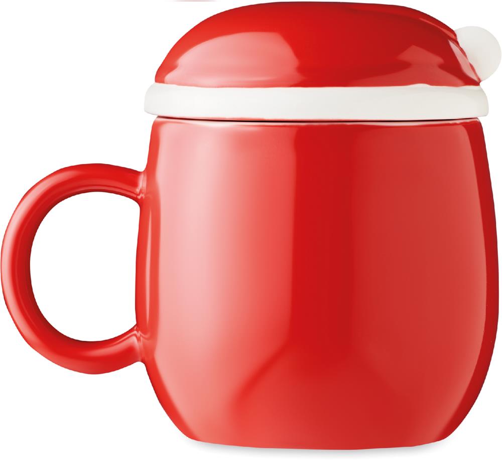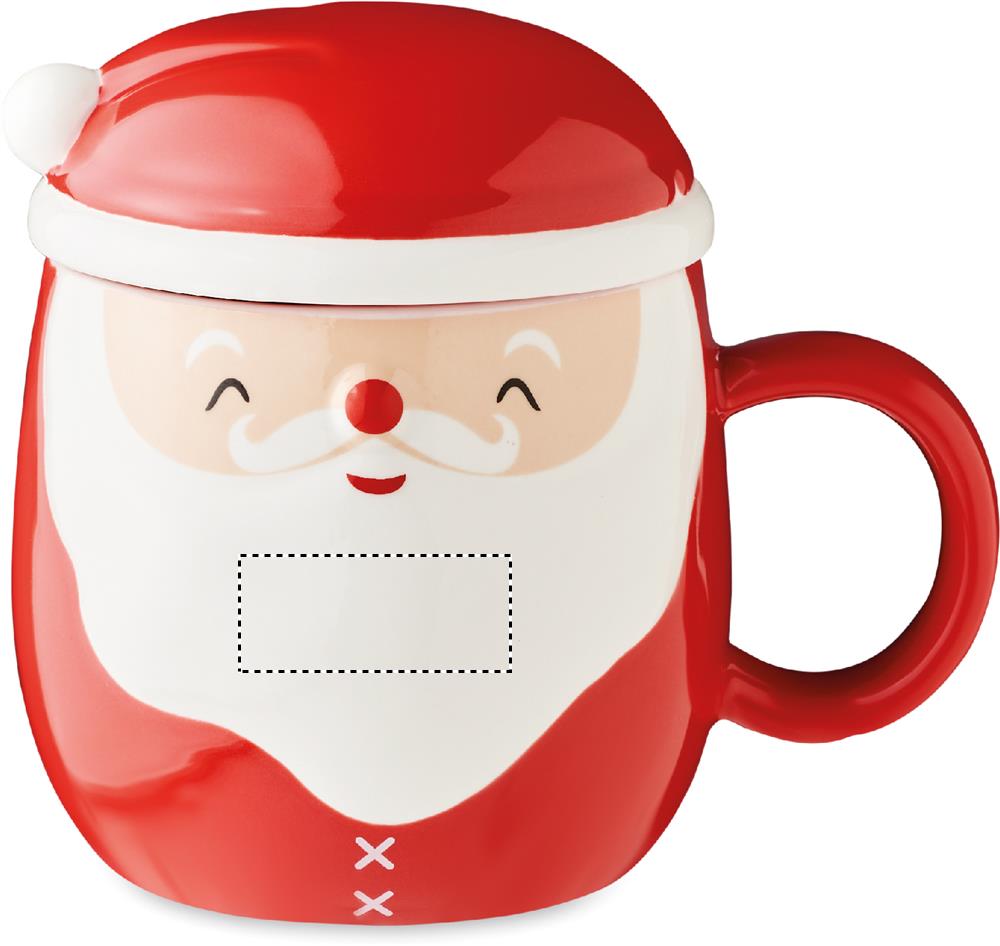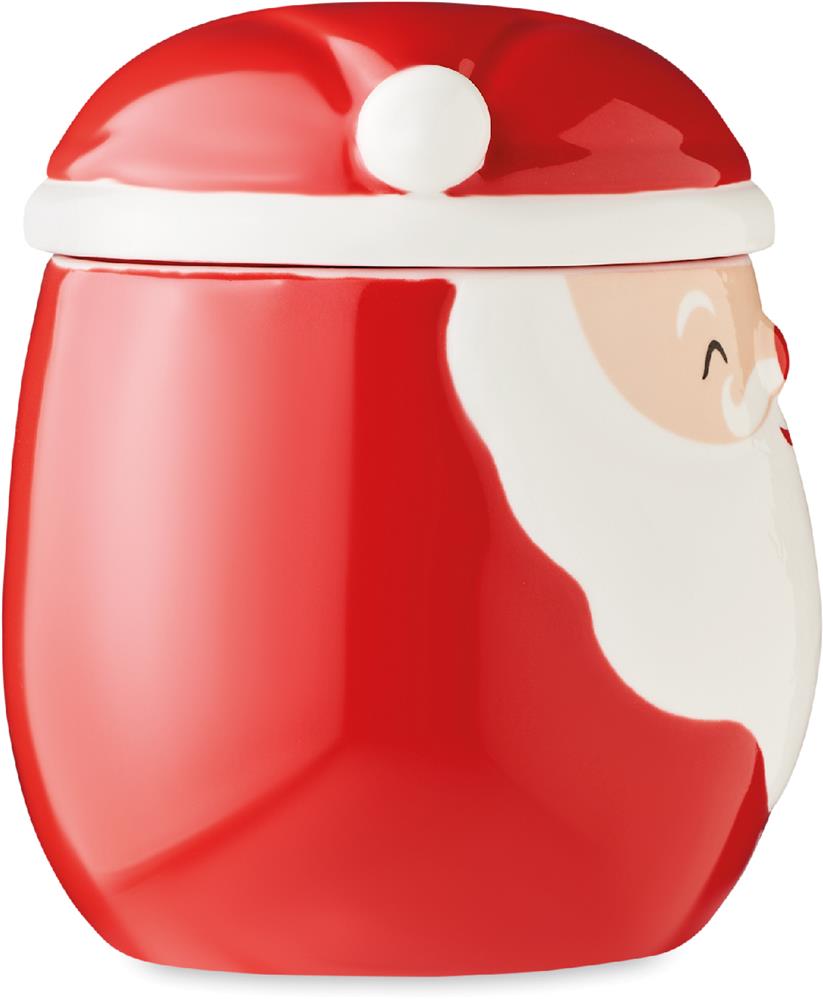 Becher mit Deckel aus Keramik. Weihnachtsmann-Design. Füllmenge: 370 ml.