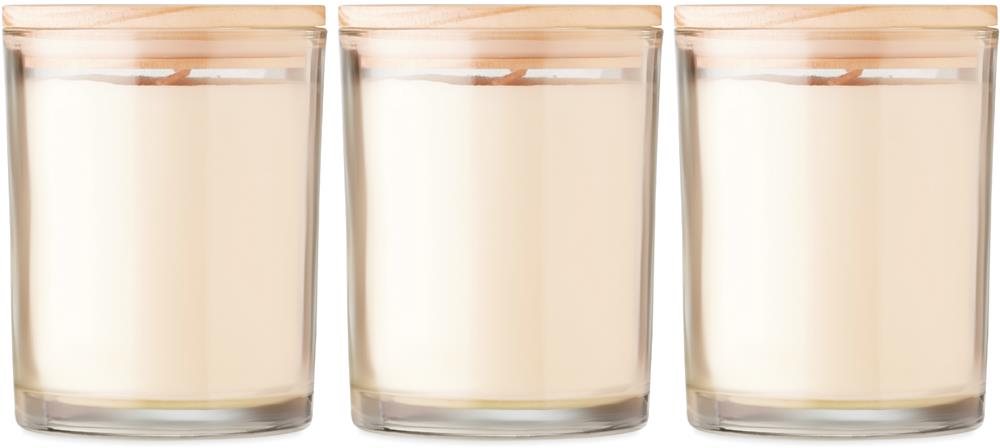 Wachskerze auf pflanzlicher Basis im Glas. Deckel aus Bambus. Aroma: Vanille. Verpackt in einem Papierschuber. Ø 8cm. Brenndauer: 40 Stunden. 240g.Material: GlasMaße: Ø8x10.5cmGewicht: 0.557 kgVeredelung: Bestickung, Bedruckung, BeflockungHandling/Farbcodes: B/22, 03Druckposition: ROUNDSCREENDruckmaße: 230 x 40 mmDrucktechniken: RS5, DLDruckposition: LIDDruckmaße: 60 x 60 mmDrucktechniken: L3, P4Druckposition: SIDE 1Druckmaße: 30 x 40 mmDrucktechniken: L3, P6Druckposition: SIDE 2Druckmaße: 30 x 40 mmDrucktechniken: L3, P6Druckposition: ROUNDSCREEN CANDLEDruckmaße: 200 x 45 mmDrucktechniken: RS6