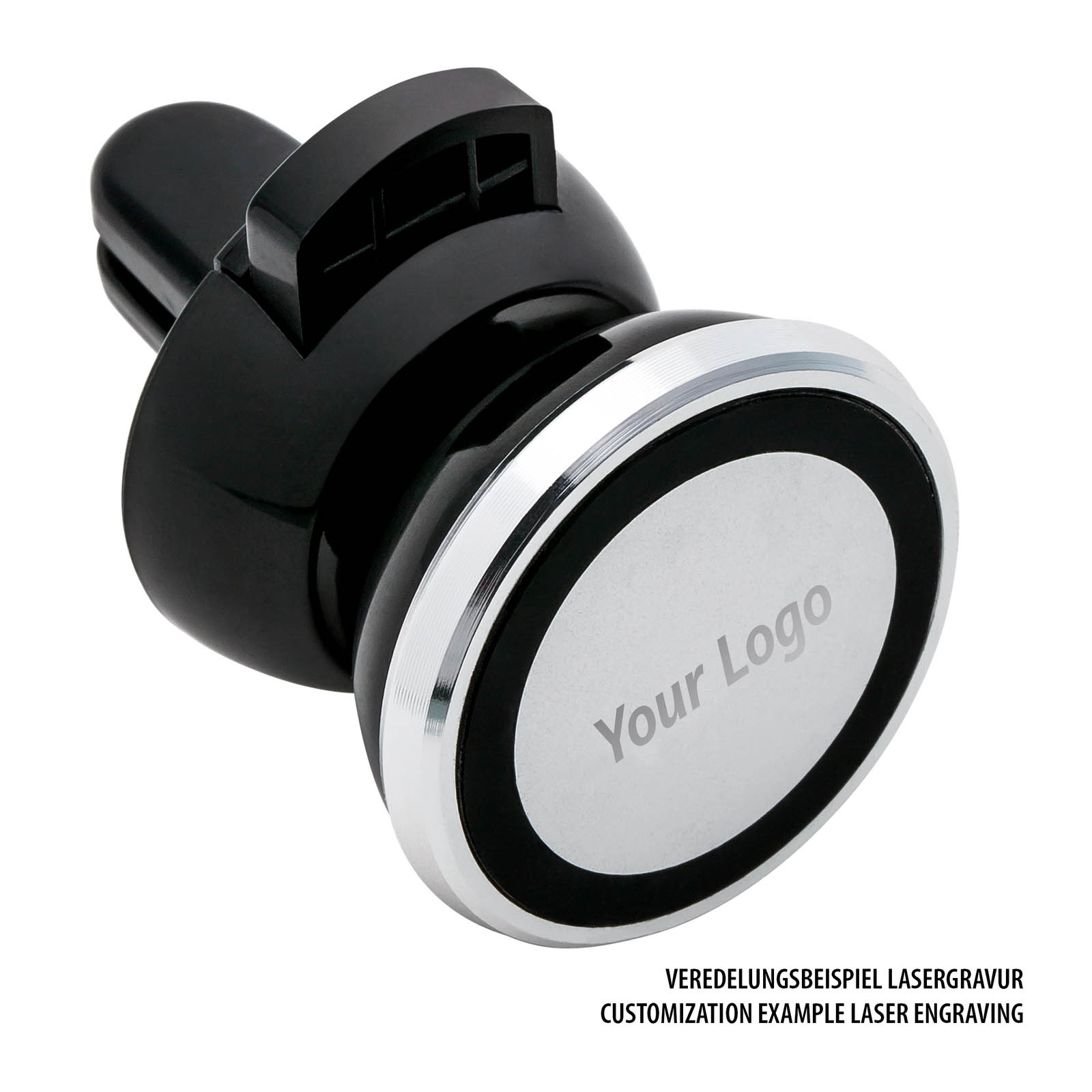 Für sicheres Fahren: Die einfache Befestigung am Lüftungsschlitz Ihres Autos hält das Smartphone auf Augenhöhe und lenkt Ihren Blick nicht unnötig ab.Kunststoff, schwarz, schwarz/weiß, Handyständer, PolybeutelFarbe: schwarz, schwarz/weißGewicht: 31,6 gFormat in mm: 79 (L) x 40 (B) x 25 (H)Veredelungsvarianten: Tampondruck (1c), Tampondruck (2c), Doming 900Druckfläche: 37,5 x 12,5 mmHandling: AMaterial: KunststoffFarbe: Schwarz, schwarz/weiß
