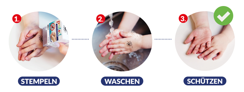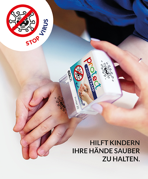 Die unbedenkliche Stempelfarbe. Unser Protect Stempel ist mit einer dermatologisch unbedenklichen zertifizierten Stempelfarbe ausgestattet.