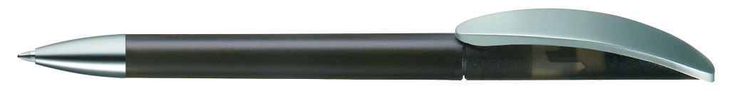 Drehkugelschreiber mit transparent gefrostetem oder gedeckt mattem Gehäuse, Bogenclip silber matt und schwerer Metallspitze matt verchromt.Druckbereich: Auf dem Clip 38mm x 8mm Tampondruck (T), in Clipverlängerung 45mm x 20mm Siebdruck (S), gegenüber vom Clip 45mm x 20mm Siebdruck (S), seitlich vom Clip 45mm x 20mm Siebdruck (S)