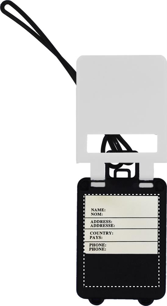 Kofferanhänger mit verstecktem Adressfeld. Aus Kunststoff.Material: ABSMaße: 9,5x5,5x0,4 cmGewicht: 0.015 kgVeredelung: Bestickung, Bedruckung, BeflockungHandling/Farbcodes: /03, 06, 37Druckposition: FRONT PDDruckmaße: 55 x 47 mmDrucktechniken: PD2Druckposition: BACK PDDruckmaße: 55 x 67 mmDrucktechniken: PD2Druckposition: FRONTDruckmaße: 35 x 35 mmDrucktechniken: P2Druckposition: BACKDruckmaße: 42 x 41 mmDrucktechniken: P2Druckposition: INSIDEDruckmaße: 45 x 55 mmDrucktechniken: DL