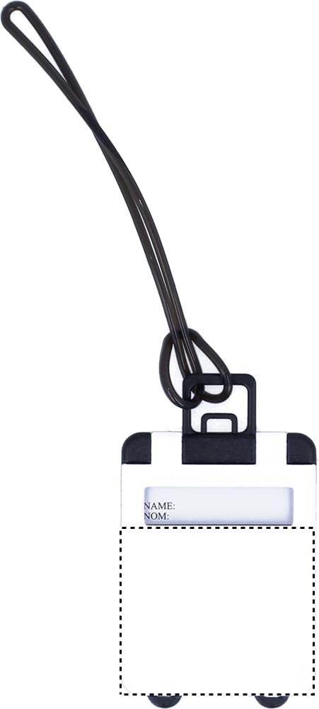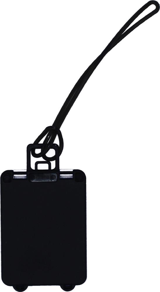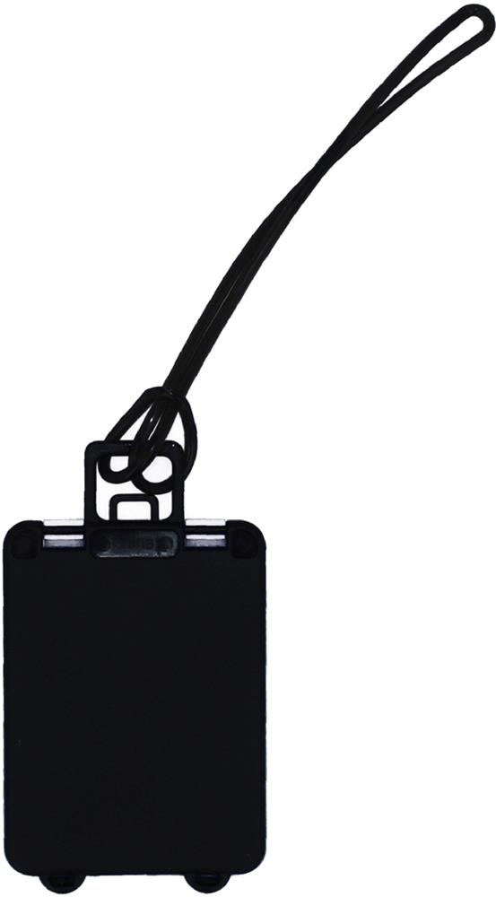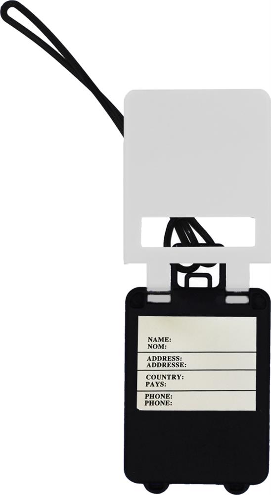Kofferanhänger mit verstecktem Adressfeld. Aus Kunststoff.