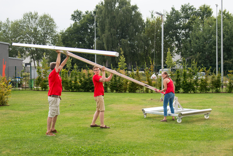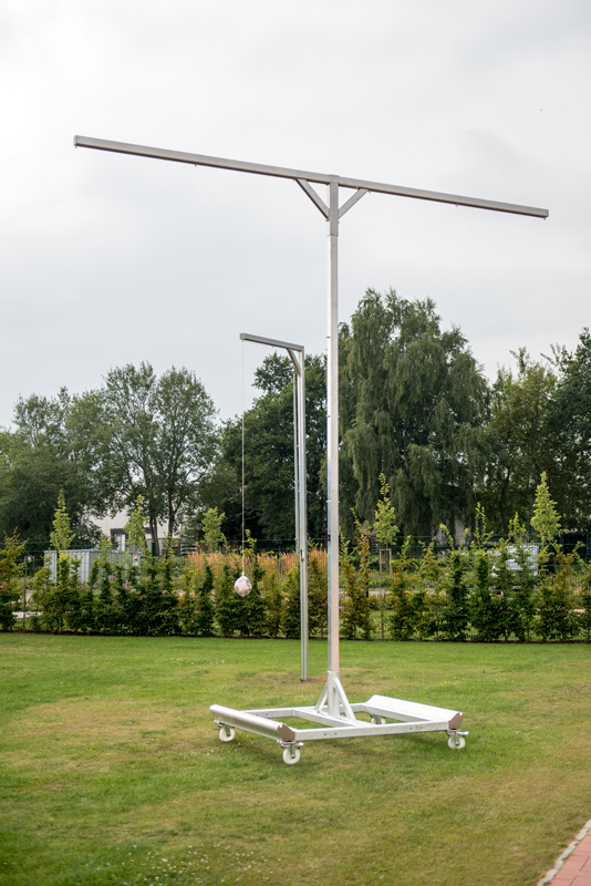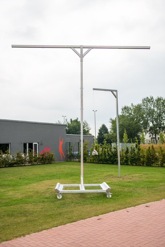 Aus Alu-Profil 80 x 80 mmm,sehr robuste Konstruktion,mit zwei Auslegern von jeweils 2,5 m ,Höhe 4,5 m, komplett mit Aufwickler,Seil und Standarddeckel ohne Pendelball....
