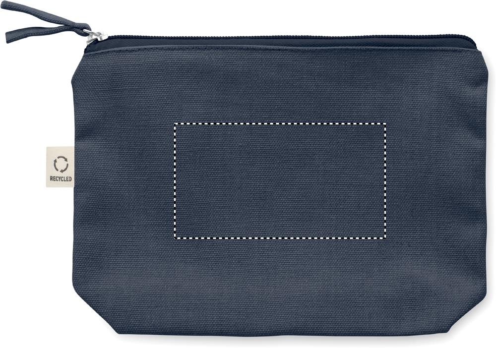 Kosmetik- oder Zubehörtasche aus recyceltem Material (70 % recycelte Baumwolle, 30 % RPET-Polyester) mit farblich passendem Reißverschluss-Puller. 320 g/m². Artikel kann nach dem Bedrucken schrumpfen.
