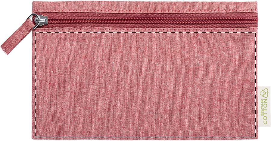Kosmetik- oder Zubehörtasche aus recyceltem Material (70 % recycelte Baumwolle, 30 % RPET-Polyester) mit farblich passendem Reißverschluss-Puller. 320 g/m². Artikel kann nach dem Bedrucken schrumpfen.Material: RPET-Recycelte BaumwolleMaße: 21.5x5x15cmGewicht: 0.02 kgVeredelung: Bestickung, Bedruckung, BeflockungHandling/Farbcodes: /03, 07, 13, 04Druckposition: SIDE 1Druckmaße: 110 x 60 mmDrucktechniken: S3, T1, TD1, TRDruckposition: SIDE 2Druckmaße: 110 x 60 mmDrucktechniken: T1, TD1, TR
