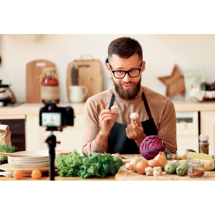 Küchenschürze mit 2 Fronttaschen aus Organic Cotton 200 g/m².