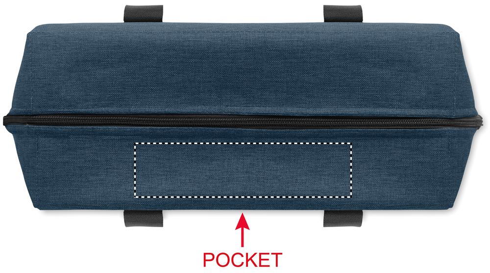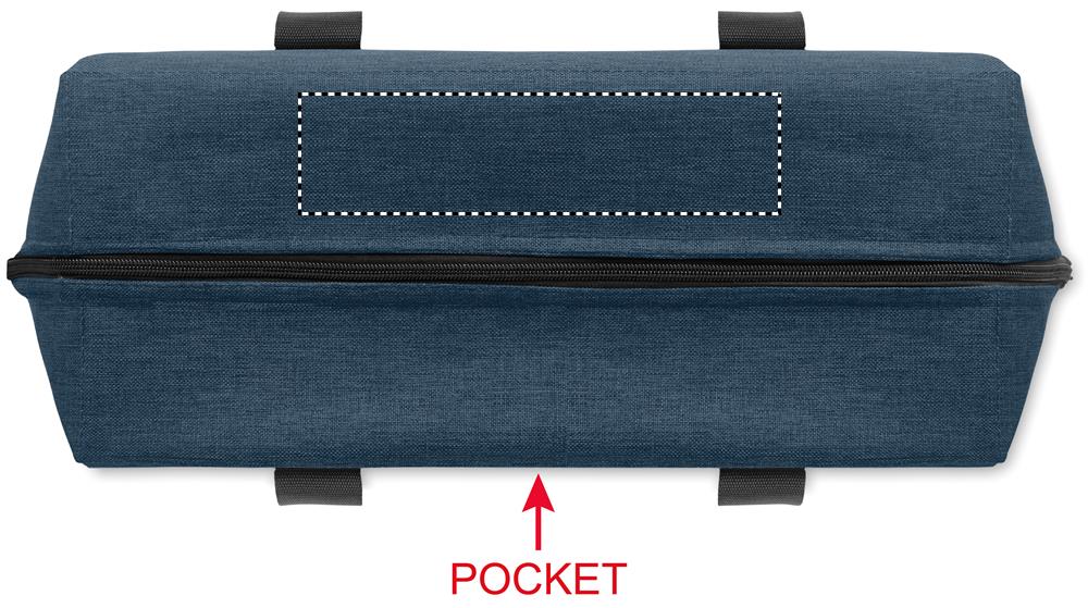 Kühltasche aus RPET 300D kationischem Polyester. Isoliermaterial: 3mm Schaumstoff, laminiert mit Aluminiumfolie. Füllmenge: 3L.