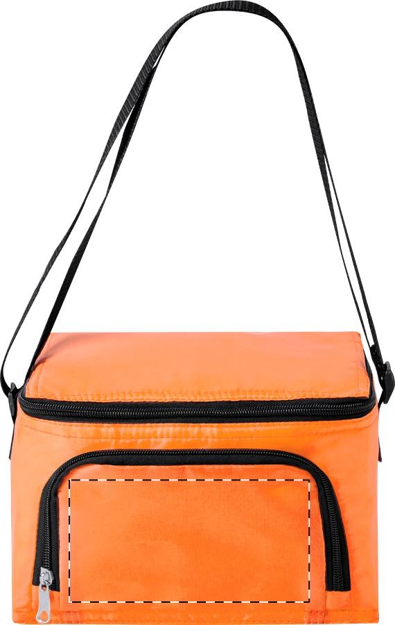 Kühltasche aus Polyester mit Reißverschlussfächern, Aluminiumpolsterung und Schultergurt. Für 6 Dosen á 0,33 L. Material: 210D Polyester.