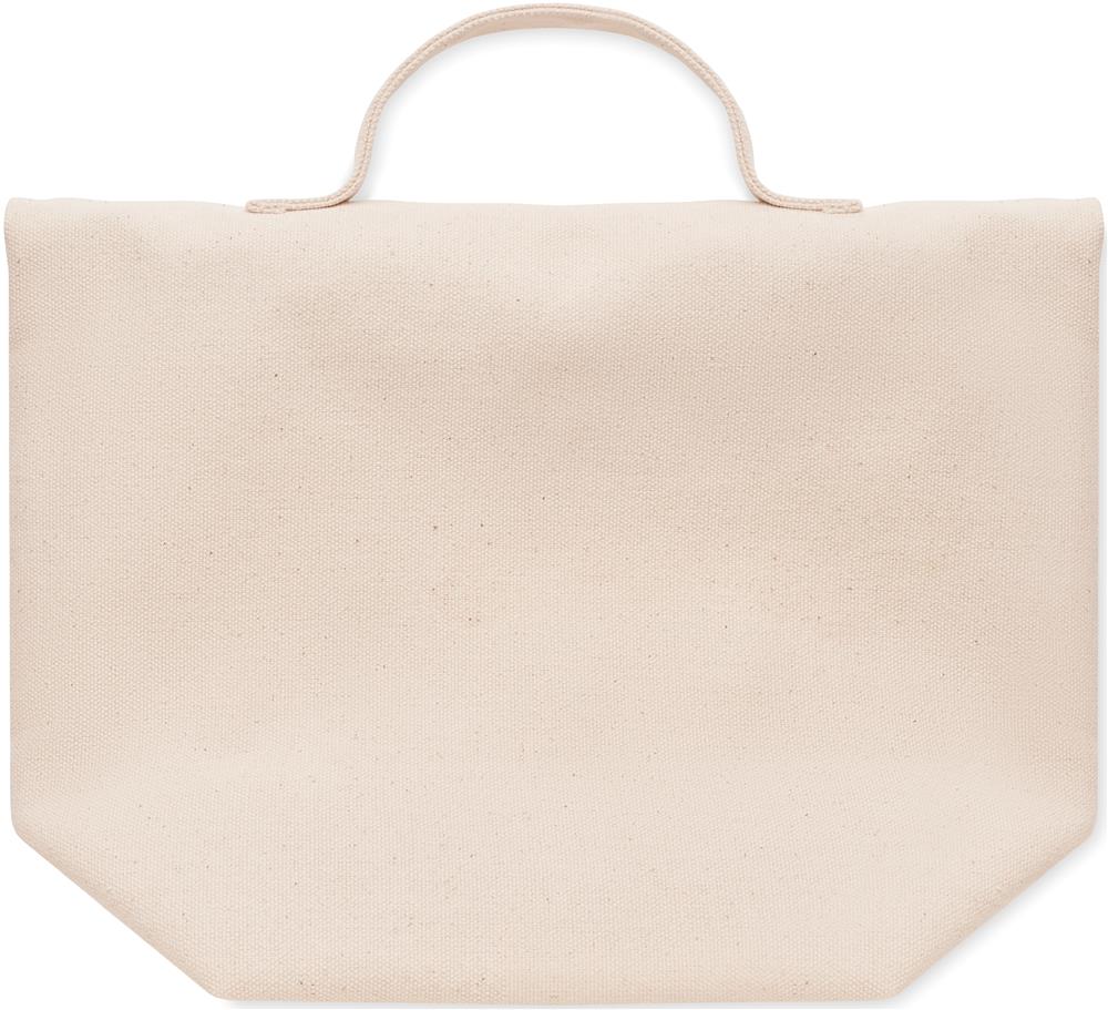 Kühltasche aus aus recyceltem Polycotton (70% recycelte Baumwolle, 30% recycelter Polyester) mit Rolltop-Klettverschluss. Isolierung: 3mm PE-Schaum mit 12C PEVA.