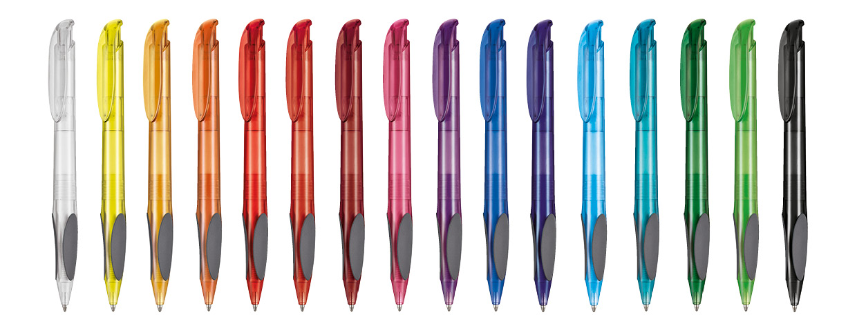 Mit dieser wertigen Druckkugelschreiber-Neuheit in Frozen-Optik „Made in Germany“ haben Sie alles im Griff! Ein völlig neu gestalteter Griffbereich bietet eine tolle Haptik und Ergonomie durch drei gummierte Griffflächen, die sich der natürlichen Fingerhaltung in Schreibstellung anpassen. Eine angenehm weich schreibende Qualitätsmine MARATHON SOFT sorgt für ein stets einwandfreies Schriftbild. Lieferbar auch mit Gelmine.