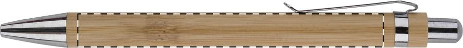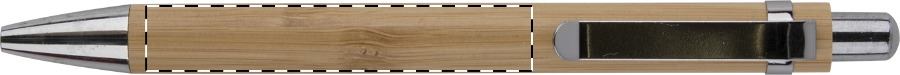 Drehkugelschreiber aus Bambus mit Details aus Metall. Blaue Tinte. Bambus ist ein natürliches Produkt, es kann daher zu leichten Abweichungen in Farbe, Dekor und Maßen kommen.Material: BambusMaße: Ø1,1x13,5 cmGewicht: 0.009 kgFarbe: HolzVeredelung: Bestickung, Bedruckung, BeflockungHandling/Farbcodes: /40Druckposition: BARREL RIGHT HANDEDDruckmaße: 50 x 7 mmDrucktechniken: L2, P3Druckposition: BARREL LEFT HANDEDDruckmaße: 50 x 7 mmDrucktechniken: L2, P3Druckposition: CLIP RIGHT HANDEDDruckmaße: 40 x 7 mmDrucktechniken: L2, P3Druckposition: CLIP LEFT HANDEDDruckmaße: 40 x 7 mmDrucktechniken: L2, P3Druckposition: OPPOSITE THE CLIPDruckmaße: 50 x 7 mmDrucktechniken: L2, P3