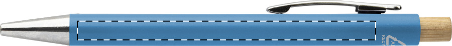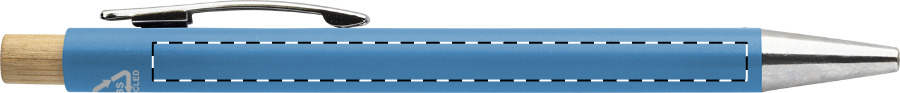 Kugelschreiber aus recyceltem ABS-Kunststoff mit Bambusdrücker und Metallclip, blauschreibend.Maße: ø10×140 mmSchreibgerät-Typ: KugelschreiberSchreibgerät-Mechanik: DruckmechanikSchreibfarbe: BlauLinienstärke: 1 mmSchreiblänge: 600 mmMaterial: Recycelter ABS-Kunststoff, Bambus, MetallVeredelungsposition 1: Korpus - rechts vom ClipTechnologie: UV-LED-Druck - EinzelnamenDurchmesser: 0Druckcode: NUVATechnologie: TampondruckMaximale Farben: 4Durchmesser: 0Druckcode: P0Technologie: UV LED DruckDurchmesser: 0Druckcode: UVAVeredelungsposition 2: Korpus - links vom ClipTechnologie: UV-LED-Druck - EinzelnamenDurchmesser: 0Druckcode: NUVATechnologie: TampondruckMaximale Farben: 4Durchmesser: 0Druckcode: P0Technologie: UV LED DruckDurchmesser: 0Druckcode: UVA