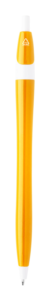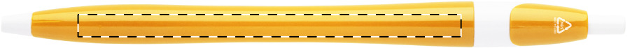 Kugelschreiber aus recyceltem ABS-Kunststoff, blauschreibend.Maße: ø10×145 mm Schreibgerät-Typ: KugelschreiberSchreibgerät-Mechanik: DruckmechanikSchreibfarbe: BlauMaterial: Recycelter ABS-KunststoffVeredelungsposition 1: Korpus - rechts vom ClipTechnologie: UV-LED-Druck - EinzelnamenDurchmesser: 0Druckcode: NUVATechnologie: TampondruckMaximale Farben: 4Durchmesser: 0Druckcode: P0Technologie: UV LED DruckDurchmesser: 0Druckcode: UVAVeredelungsposition 2: Korpus - links vom ClipTechnologie: UV-LED-Druck - EinzelnamenDurchmesser: 0Druckcode: NUVATechnologie: TampondruckMaximale Farben: 4Durchmesser: 0Druckcode: P0Technologie: UV LED DruckDurchmesser: 0Druckcode: UVAVeredelungsposition 3: Korpus - gegenüber vom ClipTechnologie: TampondruckMaximale Farben: 4Durchmesser: 0Druckcode: P0