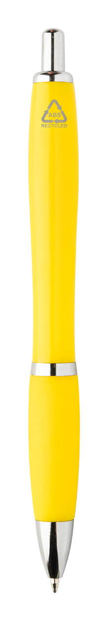 Kugelschreiber aus recyceltem ABS-Kunststoff mit farblich passendem Griffstück und verchromten Teilen, blauschreibend.