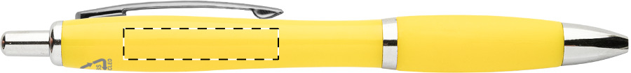 Kugelschreiber aus recyceltem ABS-Kunststoff mit farblich passendem Griffstück und verchromten Teilen, blauschreibend.Maße: ø13×140 mmSchreibgerät-Typ: KugelschreiberSchreibfarbe: BlauMaterial: Recycelter ABS-KunststoffVeredelungsposition 1: Rechts vom ClipTechnologie: TampondruckMaximale Farben: 4Durchmesser: 0Druckcode: P0Technologie: UV LED DruckDurchmesser: 0Druckcode: UVAVeredelungsposition 2: Links vom ClipTechnologie: TampondruckMaximale Farben: 4Durchmesser: 0Druckcode: P0Technologie: UV LED DruckDurchmesser: 0Druckcode: UVAVeredelungsposition 3: Korpus - rechts vom ClipTechnologie: TampondruckMaximale Farben: 4Durchmesser: 0Druckcode: P0Technologie: UV LED DruckDurchmesser: 0Druckcode: UVAVeredelungsposition 4: Korpus - links vom ClipTechnologie: TampondruckMaximale Farben: 4Durchmesser: 0Druckcode: P0Technologie: UV LED DruckDurchmesser: 0Druckcode: UVAVeredelungsposition 5: Korpus - gegenüber vom ClipTechnologie: TampondruckMaximale Farben: 2Durchmesser: 0Druckcode: P0