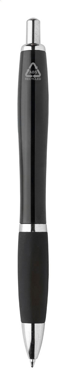 Kugelschreiber aus recyceltem ABS-Kunststoff mit farblich passendem Griffstück und verchromten Teilen, blauschreibend.