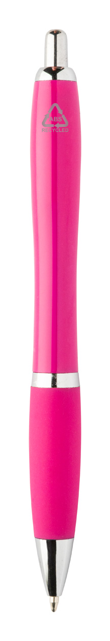 Kugelschreiber aus recyceltem ABS-Kunststoff mit farblich passendem Griffstück und verchromten Teilen, blauschreibend.