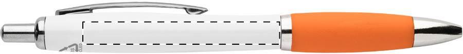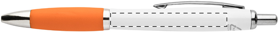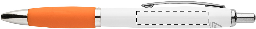 Weißer Kunststoff-Kugelschreiber mit farbigem Clip, blauschreibend.Maße: ø10×138 mmSchreibgerät-Typ: KugelschreiberSchreibgerät-Mechanik: DruckmechanikSchreibfarbe: BlauMinentyp: Normale MineLinienstärke: 1 mmMaterial: Kunststoff (ABS)Veredelungsposition 1: Korpus - rechts vom ClipTechnologie: UV-LED-Druck - EinzelnamenDurchmesser: 0Druckcode: NUVATechnologie: TampondruckMaximale Farben: 4Durchmesser: 0Druckcode: P0Technologie: TampondruckMaximale Farben: 1Durchmesser: 0Druckcode: P1Technologie: UV LED DruckDurchmesser: 0Druckcode: UVAVeredelungsposition 2: Korpus - links vom ClipTechnologie: UV-LED-Druck - EinzelnamenDurchmesser: 0Druckcode: NUVATechnologie: TampondruckMaximale Farben: 4Durchmesser: 0Druckcode: P0Technologie: TampondruckMaximale Farben: 1Durchmesser: 0Druckcode: P1Technologie: UV LED DruckDurchmesser: 0Druckcode: UVAVeredelungsposition 3: KlipTechnologie: TampondruckMaximale Farben: 4Durchmesser: 0Druckcode: P0Veredelungsposition 4: Korpus - in Verlängerung vom ClipTechnologie: TampondruckMaximale Farben: 4Durchmesser: 0Druckcode: P0
