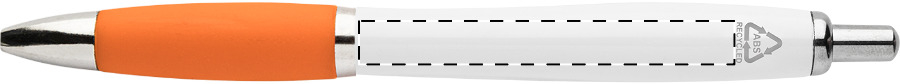 Kugelschreiber aus recyceltem ABS-Kunststoff mit weißem Schaft, farbigem Griff und verchromten Teilen, blauschreibend.Maße: ø13×140 mmSchreibgerät-Typ: KugelschreiberSchreibfarbe: BlauMaterial: Recycelter ABS-KunststoffVeredelungsposition 1: Rechts vom ClipTechnologie: TampondruckMaximale Farben: 4Durchmesser: 0Druckcode: P0Technologie: UV LED DruckDurchmesser: 0Druckcode: UVAVeredelungsposition 2: Links vom ClipTechnologie: TampondruckMaximale Farben: 4Durchmesser: 0Druckcode: P0Technologie: UV LED DruckDurchmesser: 0Druckcode: UVAVeredelungsposition 3: Korpus - rechts vom ClipTechnologie: TampondruckMaximale Farben: 4Durchmesser: 0Druckcode: P0Technologie: UV LED DruckDurchmesser: 0Druckcode: UVAVeredelungsposition 4: Korpus - links vom ClipTechnologie: TampondruckMaximale Farben: 4Durchmesser: 0Druckcode: P0Technologie: UV LED DruckDurchmesser: 0Druckcode: UVAVeredelungsposition 5: Korpus - gegenüber vom ClipTechnologie: TampondruckMaximale Farben: 2Durchmesser: 0Druckcode: P0