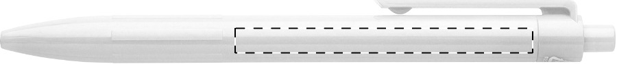 Weißer Kunststoff-Kugelschreiber mit farbigem Clip, blauschreibend.Maße: ø10×138 mmSchreibgerät-Typ: KugelschreiberSchreibgerät-Mechanik: DruckmechanikSchreibfarbe: BlauMinentyp: Normale MineLinienstärke: 1 mmMaterial: Kunststoff (ABS)Veredelungsposition 1: Korpus - rechts vom ClipTechnologie: UV-LED-Druck - EinzelnamenDurchmesser: 0Druckcode: NUVATechnologie: TampondruckMaximale Farben: 4Durchmesser: 0Druckcode: P0Technologie: TampondruckMaximale Farben: 1Durchmesser: 0Druckcode: P1Technologie: UV LED DruckDurchmesser: 0Druckcode: UVAVeredelungsposition 2: Korpus - links vom ClipTechnologie: UV-LED-Druck - EinzelnamenDurchmesser: 0Druckcode: NUVATechnologie: TampondruckMaximale Farben: 4Durchmesser: 0Druckcode: P0Technologie: TampondruckMaximale Farben: 1Durchmesser: 0Druckcode: P1Technologie: UV LED DruckDurchmesser: 0Druckcode: UVAVeredelungsposition 3: KlipTechnologie: TampondruckMaximale Farben: 4Durchmesser: 0Druckcode: P0Veredelungsposition 4: Korpus - in Verlängerung vom ClipTechnologie: TampondruckMaximale Farben: 4Durchmesser: 0Druckcode: P0