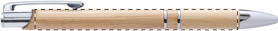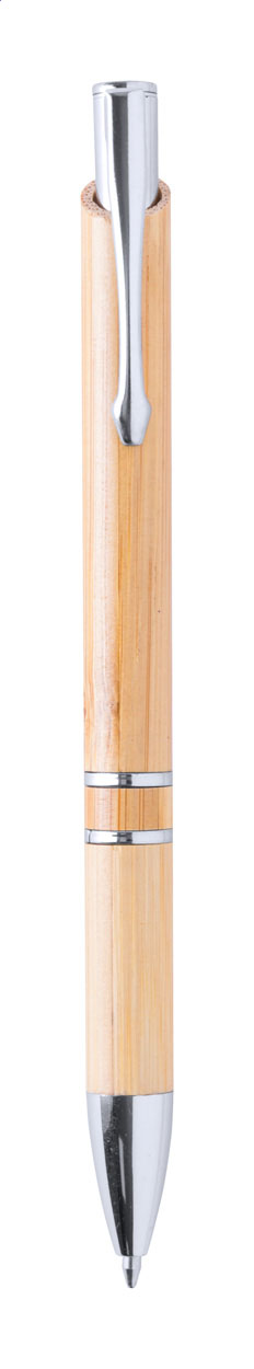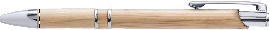 Kugelschreiber aus Bambus mit Kunststoffclip, blauschreibend.Maße: ø11×139 mmSchreibgerät-Typ: KugelschreiberSchreibgerät-Mechanik: DruckmechanikSchreibfarbe: BlauLinienstärke: 1 mmMaterial: Bambus, KunststoffVeredelungsposition 1: Korpus - rechts vom ClipTechnologie: GravurDurchmesser: 0Druckcode: E1Technologie: Gravur - EinzelnamenDurchmesser: 0Druckcode: NE1Technologie: TampondruckMaximale Farben: 4Durchmesser: 0Druckcode: P1Veredelungsposition 2: Korpus - links vom ClipTechnologie: GravurDurchmesser: 0Druckcode: E1Technologie: Gravur - EinzelnamenDurchmesser: 0Druckcode: NE1Technologie: TampondruckMaximale Farben: 4Durchmesser: 0Druckcode: P1Veredelungsposition 3: Korpus - in Verlängerung vom ClipTechnologie: GravurDurchmesser: 0Druckcode: E1Technologie: Gravur - EinzelnamenDurchmesser: 0Druckcode: NE1Technologie: TampondruckMaximale Farben: 4Durchmesser: 0Druckcode: P1Farbe: natur