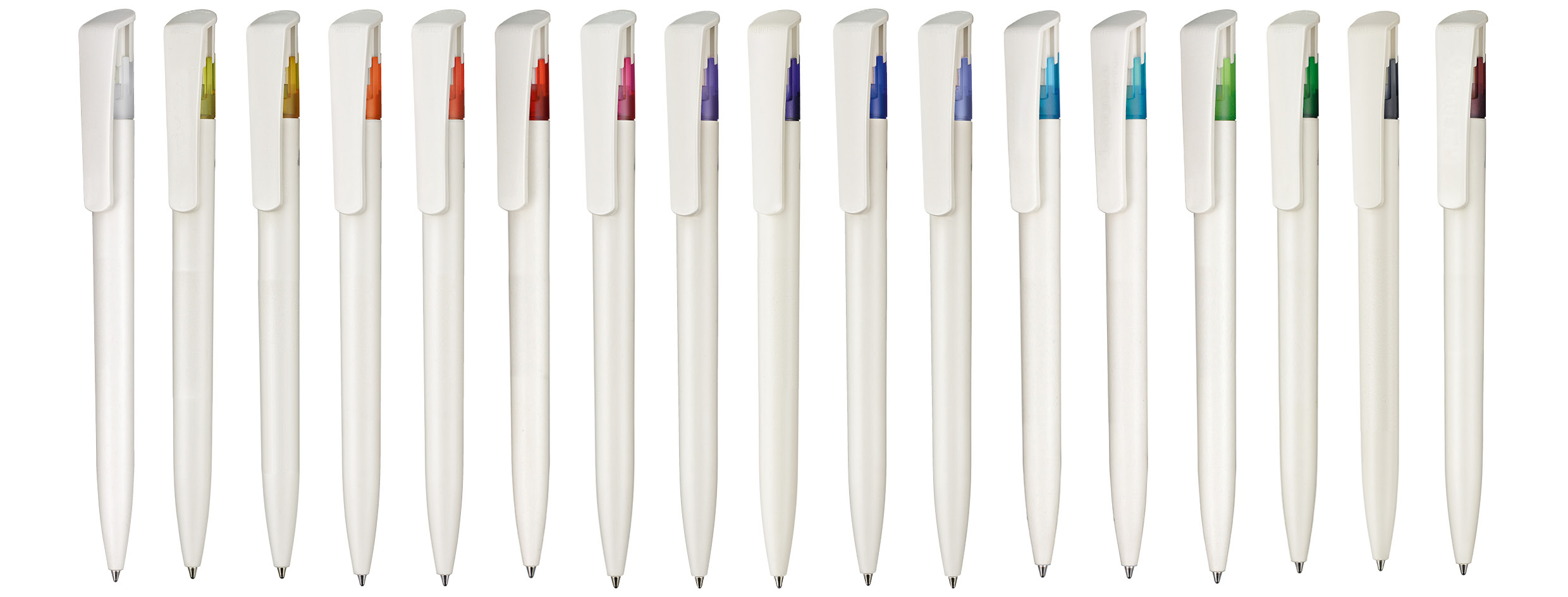 Weißer Kunststoff-Kugelschreiber mit farbigem Clip, blauschreibend.Maße: ø10×138 mmSchreibgerät-Typ: KugelschreiberSchreibgerät-Mechanik: DruckmechanikSchreibfarbe: BlauMinentyp: Normale MineLinienstärke: 1 mmMaterial: Kunststoff (ABS)Veredelungsposition 1: Korpus - rechts vom ClipTechnologie: UV-LED-Druck - EinzelnamenDurchmesser: 0Druckcode: NUVATechnologie: TampondruckMaximale Farben: 4Durchmesser: 0Druckcode: P0Technologie: TampondruckMaximale Farben: 1Durchmesser: 0Druckcode: P1Technologie: UV LED DruckDurchmesser: 0Druckcode: UVAVeredelungsposition 2: Korpus - links vom ClipTechnologie: UV-LED-Druck - EinzelnamenDurchmesser: 0Druckcode: NUVATechnologie: TampondruckMaximale Farben: 4Durchmesser: 0Druckcode: P0Technologie: TampondruckMaximale Farben: 1Durchmesser: 0Druckcode: P1Technologie: UV LED DruckDurchmesser: 0Druckcode: UVAVeredelungsposition 3: KlipTechnologie: TampondruckMaximale Farben: 4Durchmesser: 0Druckcode: P0Veredelungsposition 4: Korpus - in Verlängerung vom ClipTechnologie: TampondruckMaximale Farben: 4Durchmesser: 0Druckcode: P0
