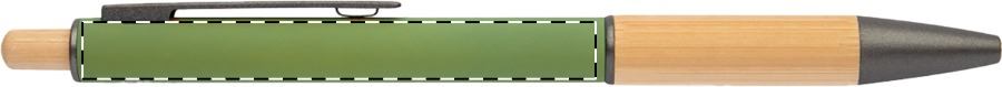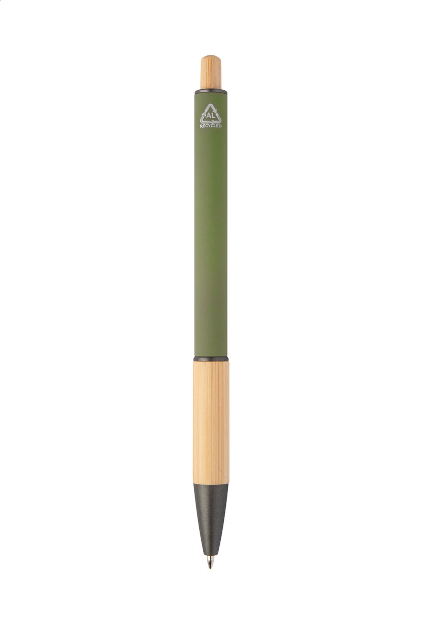 Kugelschreiber aus recyceltem Aluminium mit Griffzone und Drücker aus Bambus, Schaft mit soft-touch-finish und gun-colored Applikationen. Mit blauschreibender Mine.Maße: ø9×138 mmSchreibgerät-Typ: KugelschreiberSchreibgerät-Mechanik: DruckmechanikSchreibfarbe: BlauMinentyp: Normale MineLinienstärke: 1 mmMaterial: Recycletes Aluminium, Bambus, MetallVeredelungsposition 1: Rechts vom ClipTechnologie: GravurDurchmesser: 0Druckcode: E0Technologie: Gravur - EinzelnamenDurchmesser: 0Druckcode: NE0Veredelungsposition 2: Links vom ClipTechnologie: GravurDurchmesser: 0Druckcode: E0Technologie: Gravur - EinzelnamenDurchmesser: 0Druckcode: NE0Veredelungsposition 3: Korpus - rechts vom ClipTechnologie: GravurDurchmesser: 0Druckcode: E0Technologie: Gravur - EinzelnamenDurchmesser: 0Druckcode: NE0Veredelungsposition 4: Korpus - links vom ClipTechnologie: GravurDurchmesser: 0Druckcode: E0Technologie: Gravur - EinzelnamenDurchmesser: 0Druckcode: NE0