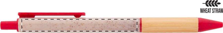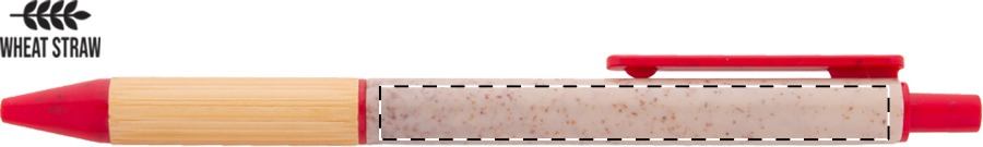 Kugelschreiber aus ökologischem Weizenstrohkunststoff mit Bambus-Griffzone und farbigen Elementen, blauschreibend.