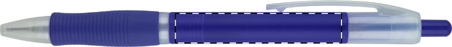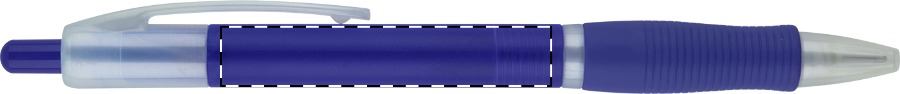 Kunststoff-Kugelschreiber mit Gummi-Griffzone, blauschreibend.Maße: ø10×145 mmSchreibgerät-Typ: KugelschreiberSchreibgerät-Mechanik: DruckmechanikSchreibfarbe: BlauMinentyp: Normale MineLinienstärke: 1 mmMaterial: Kunststoff (ABS), GummiVeredelungsposition 1: Korpus - rechts vom ClipTechnologie: TampondruckMaximale Farben: 4Durchmesser: 0Druckcode: P0Veredelungsposition 2: Korpus - links vom ClipTechnologie: TampondruckMaximale Farben: 4Durchmesser: 0Druckcode: P0