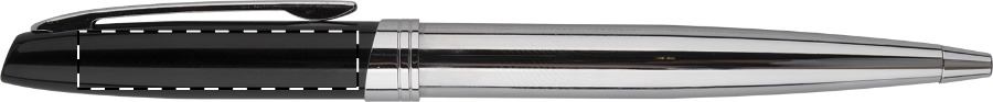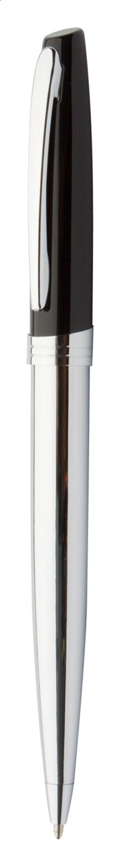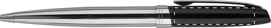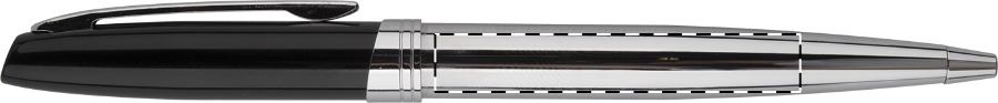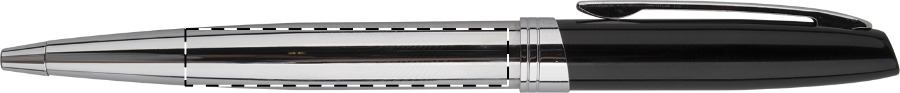 Metall-Kugelschreiber mit verchromtem Schaft und schwarz lackierter Kappe, blauschreibend. Einzeln in Geschenkbox.