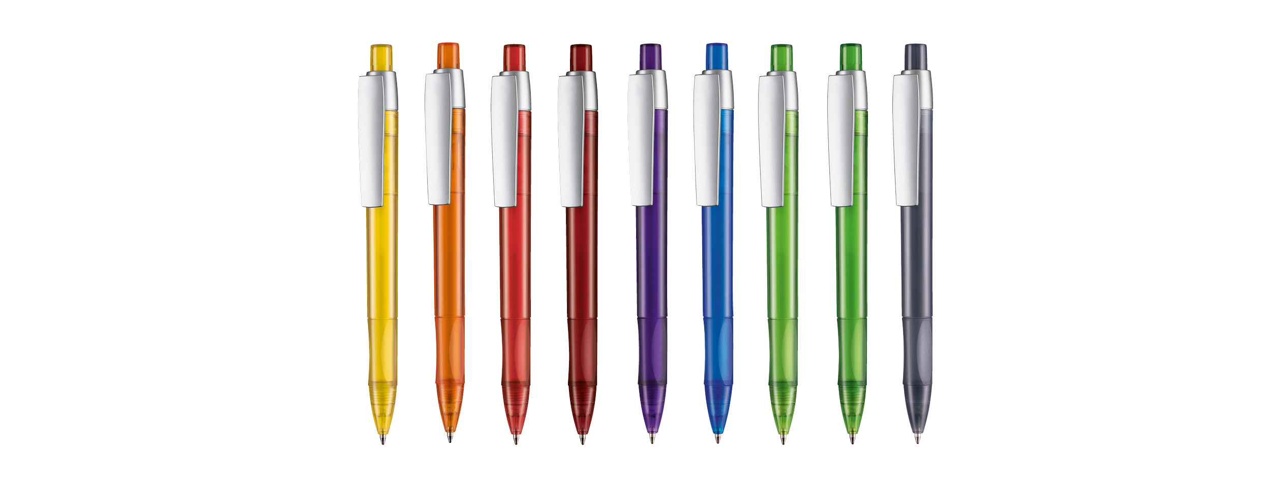 Eleganter Streuartikel mit sehr guter Haptik. Hochglänzendes, transparentes Gehäuse und silber-lackierter Clip strahlen Eleganz aus. Ausgezeichnetes Preis-Leistungsverhältnis. Die Griffzone in Dreikantform sorgt für eine sehr angenehme Haptik. Ausgestattet ist dieser Druckkugelschreiber mit einer Großraummine BUDGET.